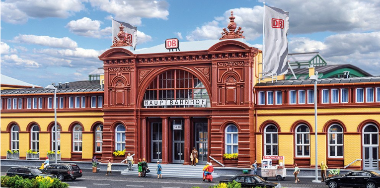 Kit. With more than 500 parts and a total length of about one metre the railway station Bonn is an impressive kit. Detailed model. Illuminated, the train station is an impressive model in night mood.