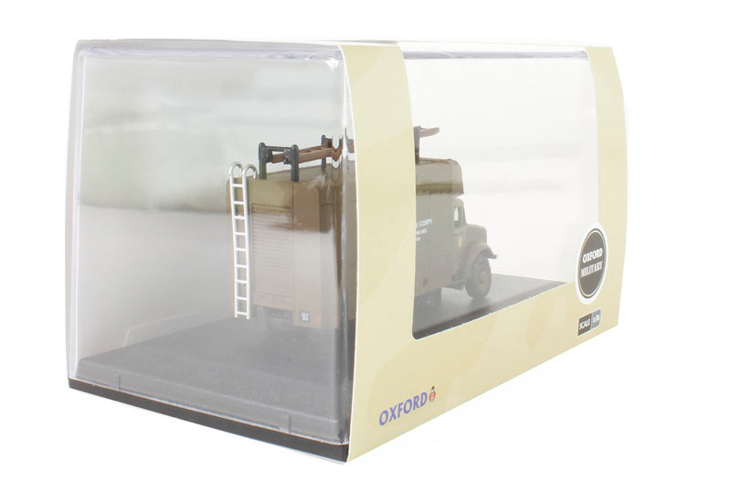 Harking back to the 1930s, several types of Bedford civilian trucks were converted to military vehicles, seeing service with the Allied Forces on all fronts in the Second World War. This Series OY truck is as used by the Civil Defence Corps, registered GLY 312 and painted an all-over brown with black chassis, representing a vehicle deployed to Mobile Column No.1, Rescue Section, as printed in white on the sides of the van. The bumpers are also white and the Corps crest appears in yellow, black and red on the cab doors. A chrome ladder runs up the left hand side of the rear shutter doors and there is also a brown roof ladder secured with black ladder holders. The interior is brown with black steering wheel. Finally, note the double wheels on the rear chassis.