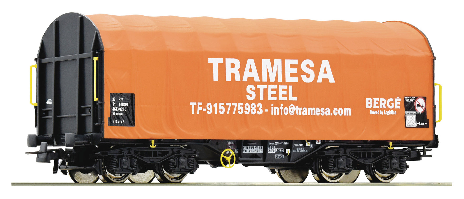 Roco 76439 H0 Gauge Shimmns Sliding Tarpaulin Wagon of the Tramesa Steel, epoch VI